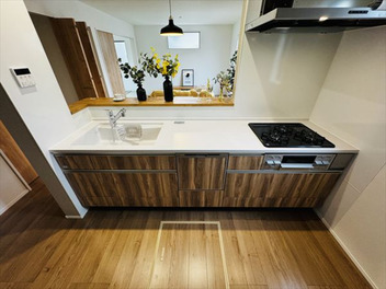 浴室暖房、浴室乾燥機、オートバス、追焚機能、シャワー付洗面化粧台、温水洗浄便座、トイレ2ヶ所、カウンターキッチン、システムキッチン、浄水器、3口以上コンロ、グリル、全居室収納、ウォークインクローゼット、クローゼット、床下収納、モニター付インターホン、シャッター雨戸、上水道、下水道、プロパンガス、電気、ダウンライト、火災警報器(報知機)、複層ガラス |