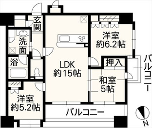 和室5帖、洋室6.2帖・5.2帖の計3室を備え、寝室や子ども部屋など、それぞれのプライベート空間もしっかり確保されています。