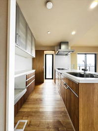 対面式システムキッチンからはリビング全体を見渡せるため、ご家族との会話を楽しみながらお料理ができます♪