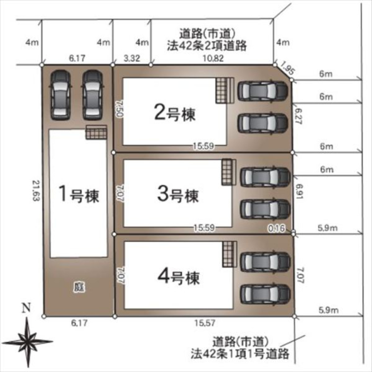 一方 方向:北 種別:公道 幅員:4m 間口:6.17m |