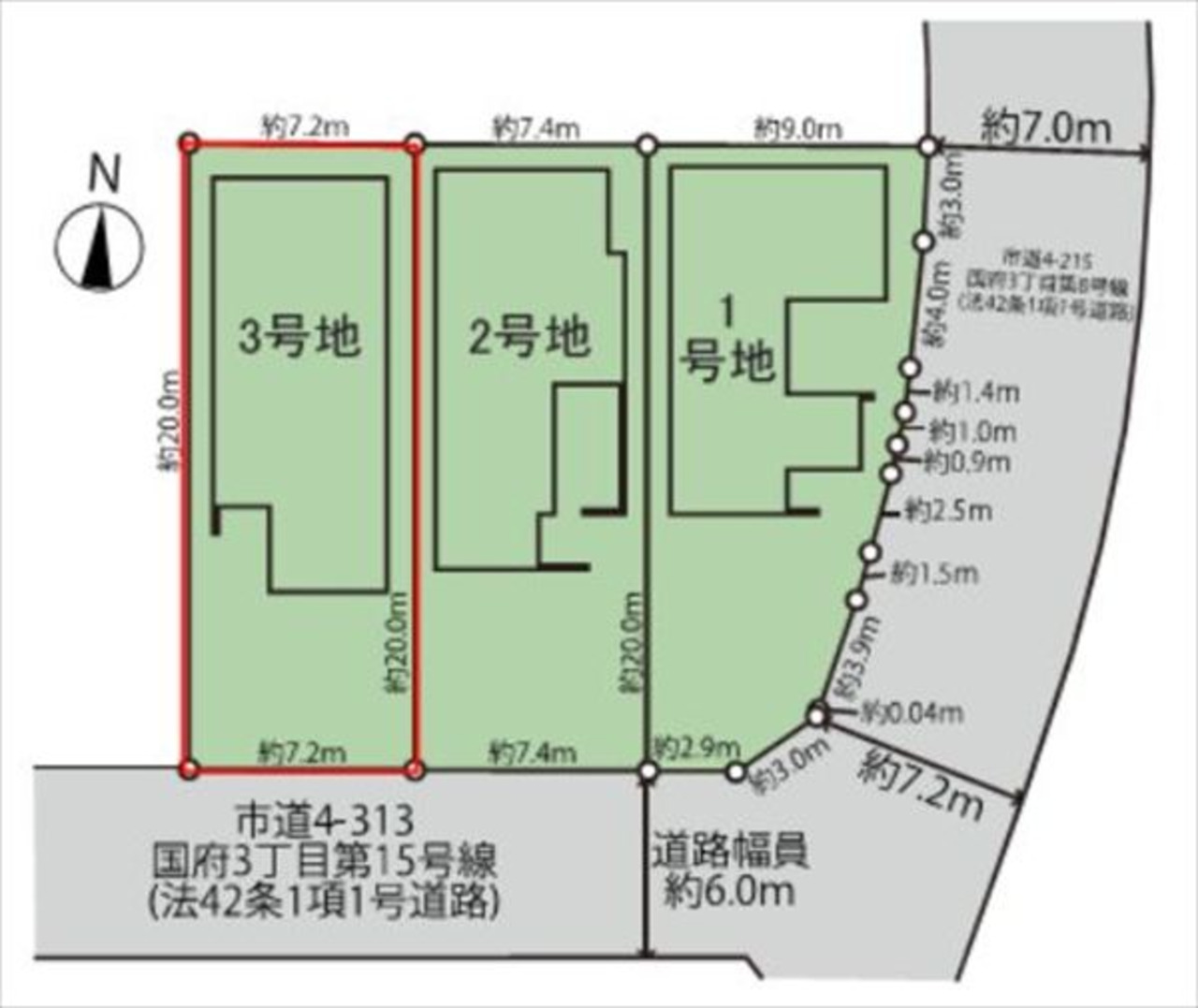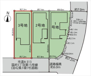 一方 方向:南 種別:公道 幅員:6m 間口:7.2m |