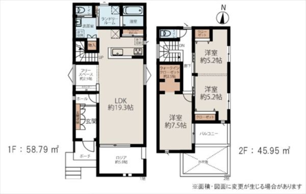 間取りは2LDKですが、2階洋室に仕切りを設けることで3LDKへ変更可能。